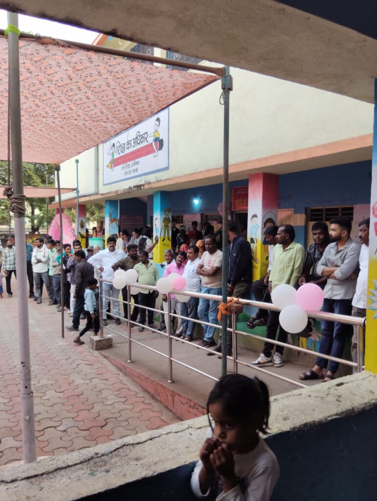 🎯 मतदारांची मोठी रांग, उत्साह उंचावलेला